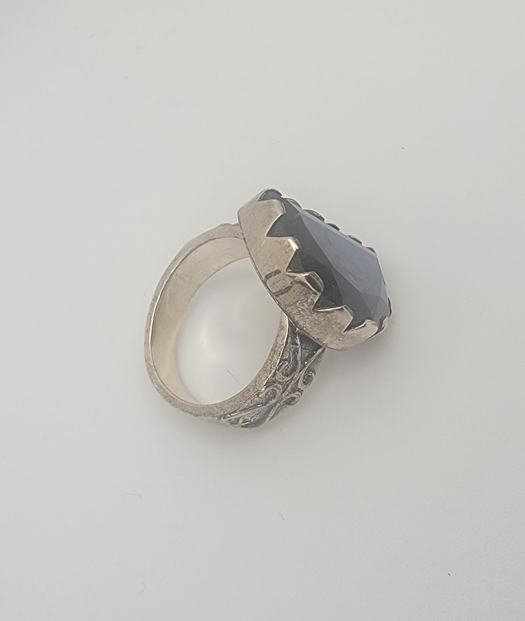 Sterling Silver and Labradorite Half Moon Design Gemstone Ring