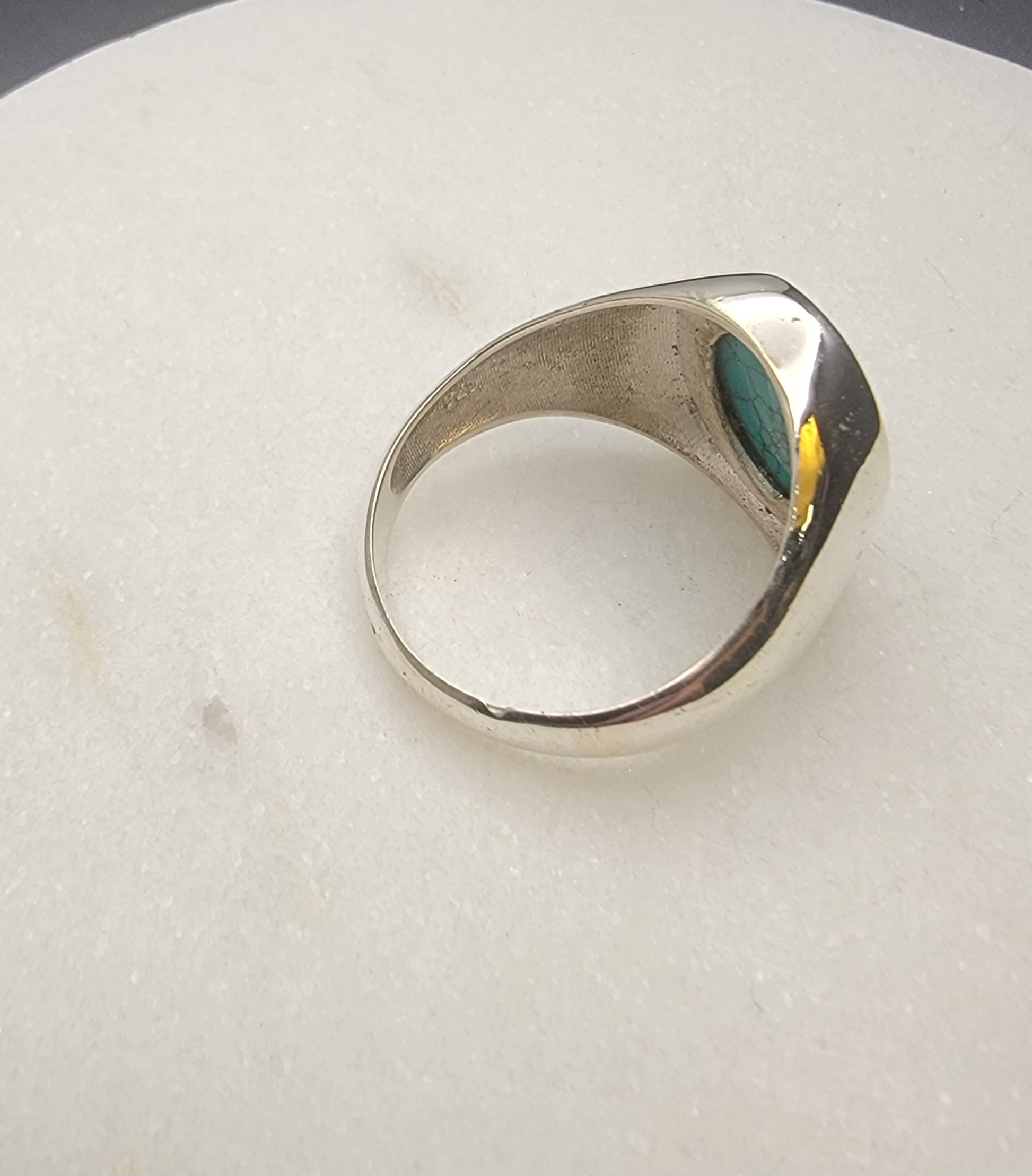 Sterling Silver Turquoise Signet Ring – Handcrafted Statement Band
